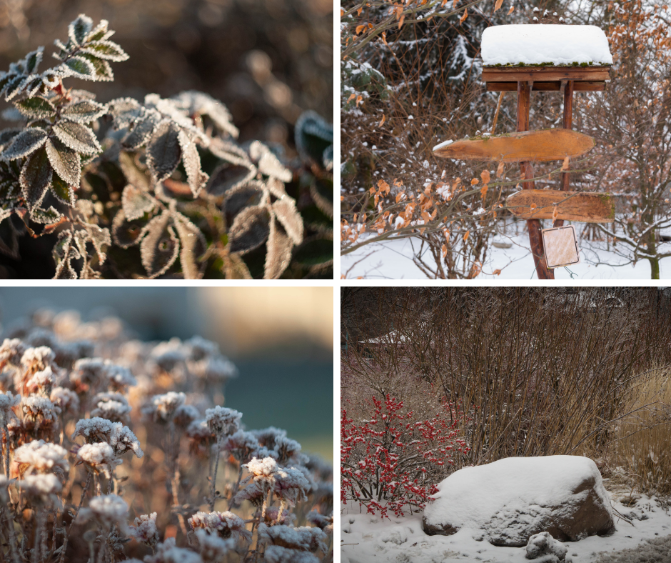 Snow may look intimidating, but it insulates plants from harsher frosts. If snow gets heavy, clear only branches at risk of breaking. Appreciate the garden’s bare beauty – it’s a time to celebrate the structure of trees, shrubs, and formal hedges.