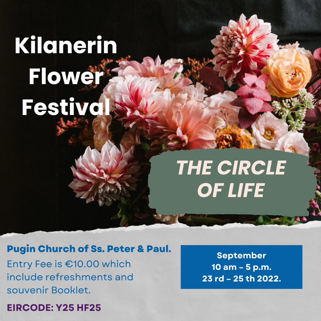 The inaugural Kilanerin Flower Festival will take place from 23rd – 25th September, 2022, in the Pugin Church of Ss. Peter & Paul.