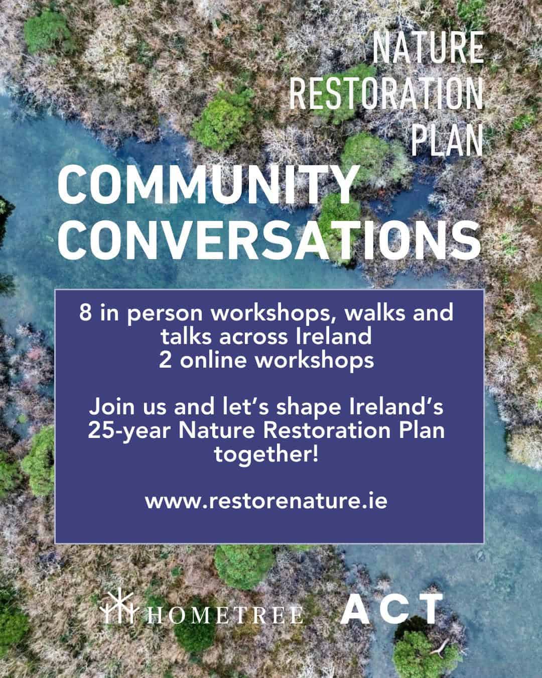 ACT and Hometree are hosting Community Conversations this September and October, bringing people together across the provinces to share stories, ideas, and experiences that will shape Ireland’s Nature Restoration Plan.