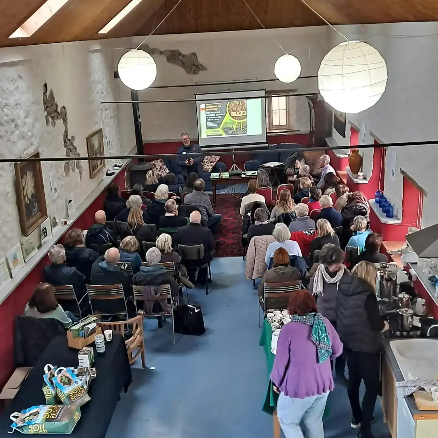 The coach house in Bellefield is located in the yard behind the house. Beautifully and lovingly restored by Angela Jupe it comprises of a large open space suitable for a number of activities as well as kitchen and toilet facilities. The space can hold up to 50 participants and retains much of the character of Bellefield House and Gardens while benefitting from under floor heating and a stove. Up to 30 cars can be facilitated in our carpark. We have held lectures, demos, workshops and other events in the coach house. Our team will set the room out to your individual needs and liaise with you for any extra requirements you may have.