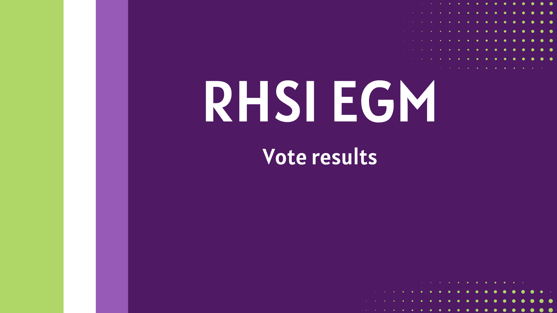 The Extraordinary General Meeting to consider the special resolution to change the name of the RHSI was held at Bellefield on Saturday 18th May. Twenty-eight members attended in person. Proxy votes were received from 431 members. These were verified and counted under the supervision of the auditor. The result of the poll was: